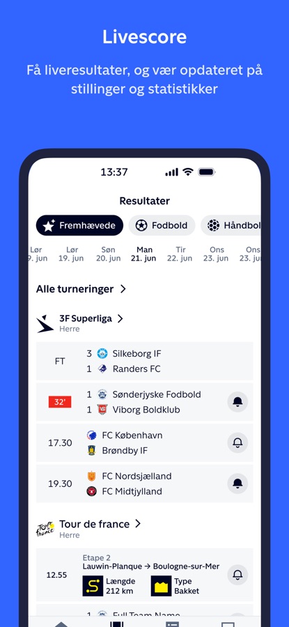 Med TV 2 Sport app får du de vigtigste sportsnyheder. Du kan nemt følge resultaterne live ved at tilmelde dig push-beskeder på de specifikke kampe og etaper inden for cykling, fodbold og håndbold – det er fuldstændig op til dig.