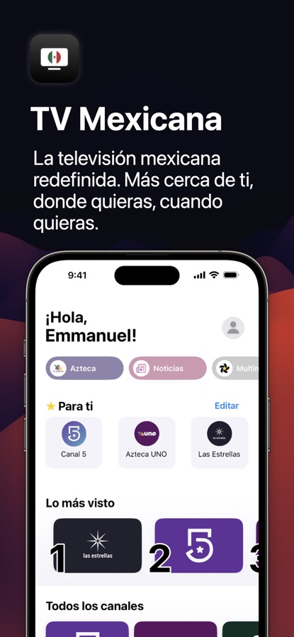 Tu app favorita de TV Mexicana, ahora tiene un app para dispositivos móviles. Disfruta de más de 20 canales en vivo, en la palma de tu mano. En donde quieras y cuándo quieras. Descubre todo lo que te espera al descargar la app.