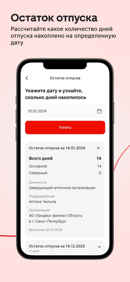 - Точная информация об остатке неиспользованных дней отпуска.