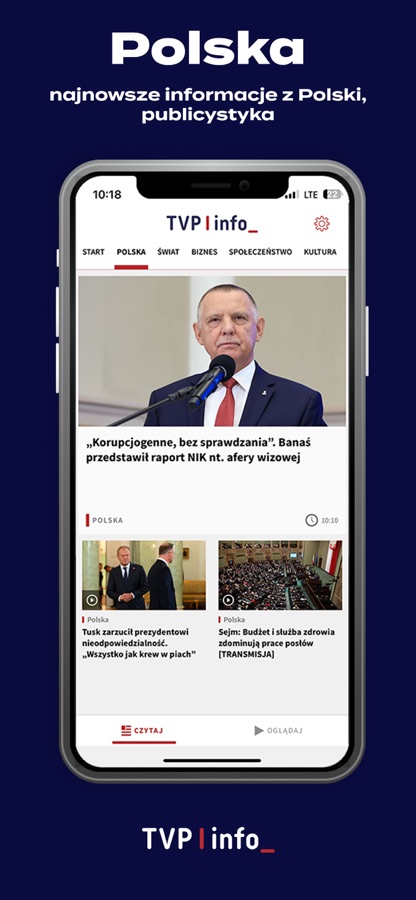 Pobierz aplikację mobilną TVP Info na swój telefon lub tablet. Dzięki jasnemu podziałowi na sekcje „czytaj” lub „oglądaj” w szybki sposób możesz dotrzeć do treści, które Cię interesują. Dodatkowo funkcja powiadomień sprawi, że będziesz zawsze na bieżąco. Teraz transmisję na żywo i najciekawsze wideo uruchomisz jednym przyciskiem „oglądaj”. Wolisz czytać? Przerzuć się na strumień „czytaj”, gdzie znajdziesz materiały portalu tvp.info.