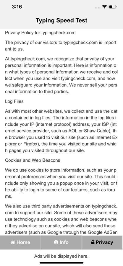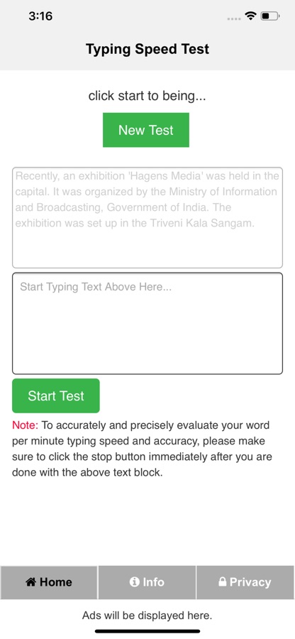 Check your mobile typing speed anytime for free. Our WPM typing test allows you to track how many words per minute that you can type. Once you are ready to start, click the start button and figure out exactly how many words per minute you can type. Please make sure to click the stop button immediately after you are done with the above text block.