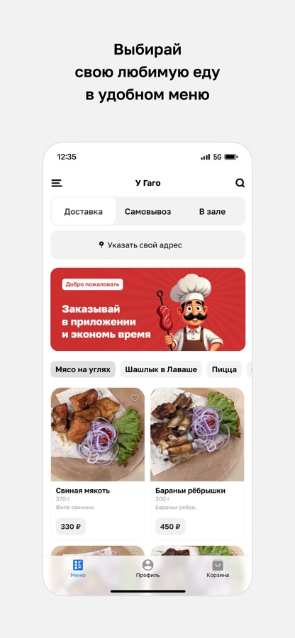 «У Гаго» — простое и удобное приложение для заказа еды с доставкой.