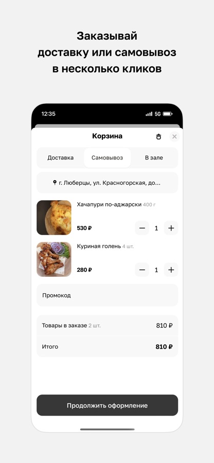 В приложении вы можете просматривать актуальное меню, выбирать блюда и оформлять заказ прямо со смартфона — быстро и удобно.