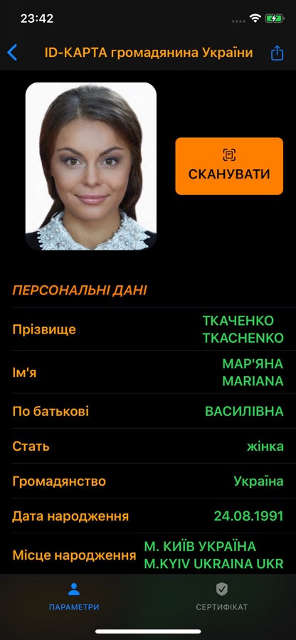 Додаток дозволяє зчитувати дані NFC-чипа паспорта громадянина України для виїзду за кордон і ID-карти громадянина України. Надано можливість зберегти дані в форматі pdf.