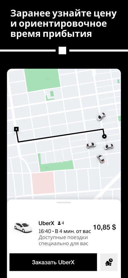 В приложении Uber предварительная стоимость поездки указывается на этапе заказа, так что вы можете заранее оценить и сравнить разные варианты.