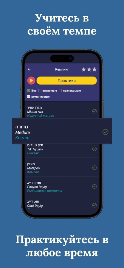 Скачайте сейчас и начните изучать иврит простым, практичным и гибким способом — в своем темпе!