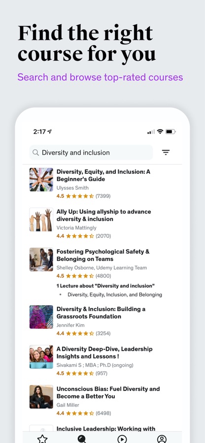 Udemy Business features 11,000+ top-rated and most relevant courses for you to learn new skills anytime, anywhere. From software development, IT, design, leadership to communication skills, the Udemy Business mobile app puts the freshest, most in-demand content in your hands. Upskill your talents and learn from highly respected real-world practitioners, thought leaders, and experts from around the world.
