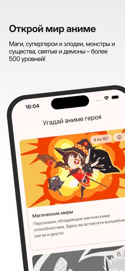 Увлекательная игра, в которой вам предстоит угадывать персонажей из мира аниме! Погрузитесь в разнообразные всеселенные: от магических миров и романтических историй до киберпанка и зомби-апокалипсиса. Каждая вселенная содержит десятки уровней с любимыми героями!
