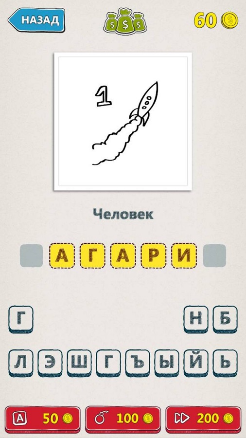 Загадки будут попадаться как простые, так и довольно сложные. Так что иногда придется поднапрячь мозги. Но вы всегда сможете, в случае чего, воспользоваться дополнительными подсказками: «Показать одну букву», «Убрать лишние буквы» или даже «Пропустить уровень», если задачка оказалась совсем не по силам.
