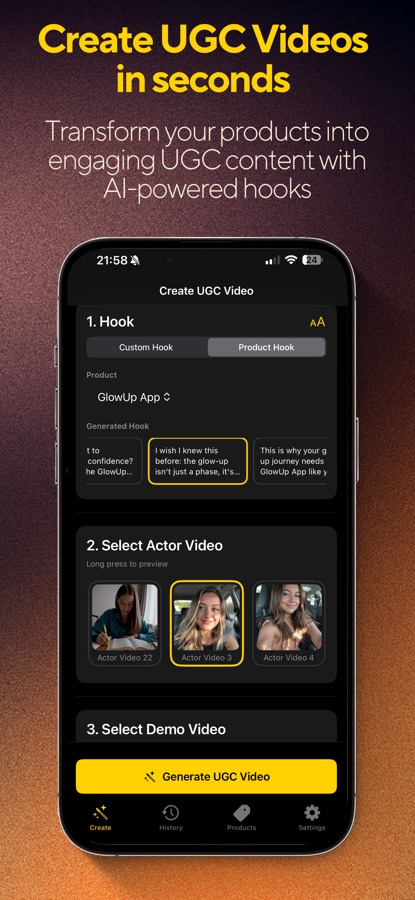 Transform your products into engaging UGC content with our powerful three-step process: