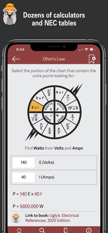 The Ugly’s Electrical Reference app is part of the popular Ugly’s Professional Reference® series, which is an imprint of Jones & Bartlett Learning. National Electrical Code and NFPA 70 are registered trademarks of the National Fire Protection Agency and are not associated with Ugly’s Electrical References in any way.