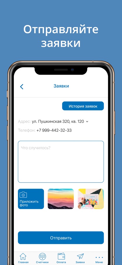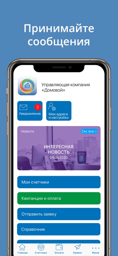 Отправляйте заявки с фотографиями, показания счетчиков, получайте важную информацию от управляющей компании!