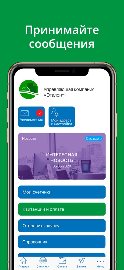 Отправляйте заявки с фотографиями, показания счетчиков, получайте важную информацию от управляющей компании!