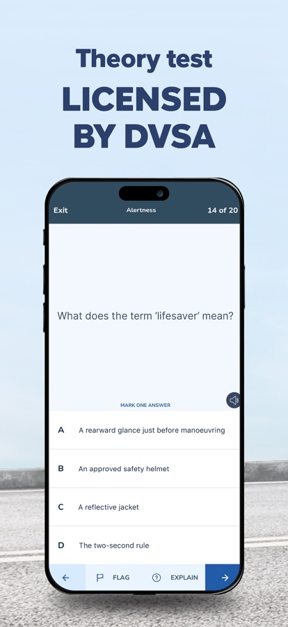 Driving Theory Test: Test your knowledge and go through every revision question, answer and explanation, licensed by the DVSA (Driver and Vehicle Standards Agency).