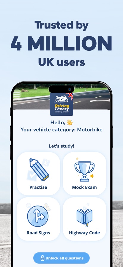 UK Motorcycle Theory Test Kit app has all you need to PASS your test on the 1st try! Includes the latest revision questions and answers for 2026, licensed by DVSA.