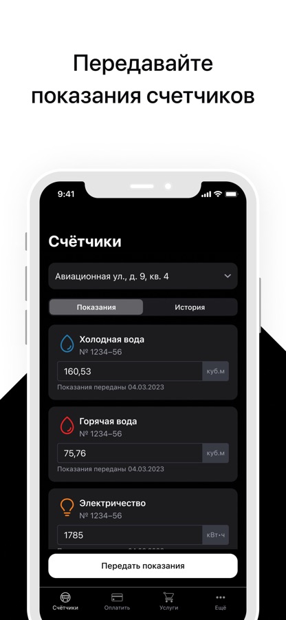 • Подача показаний счётчиков;