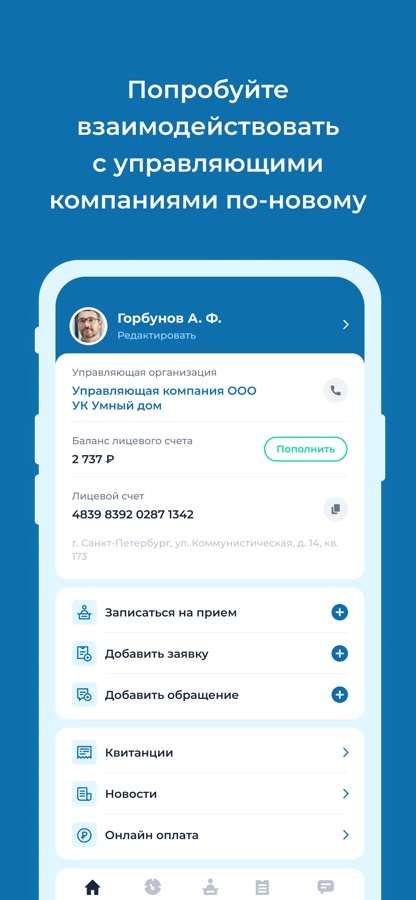 — Вызывать мастера, следить за статусом заявки, общаться в чате и оценивать качество работы;