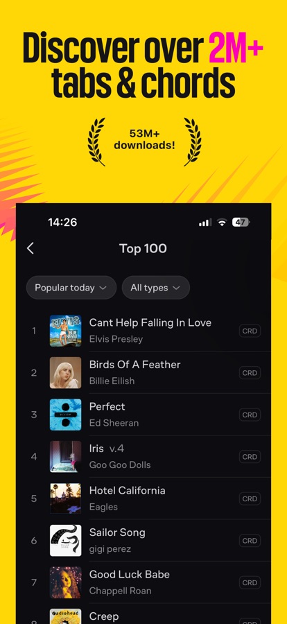 • Получи 1.4 млн табулатур и аккордов к более чем 1 000 000 песен