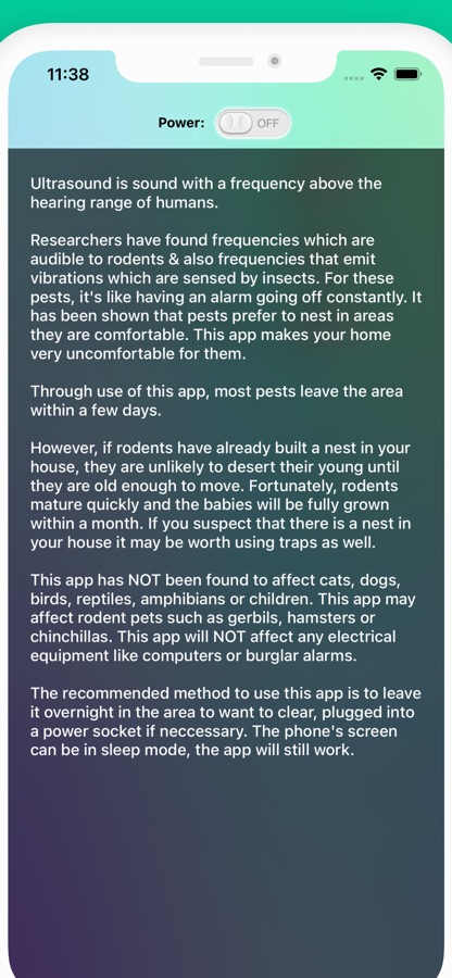 The frequencies have been specifically selected so that the sounds are audible to most rodents & the vibrations can be sensed by insects. For these pests, it’s like having an alarm going off constantly. It has been shown that pests prefer to nest in areas they are comfortable. This app makes your home very uncomfortable for them.