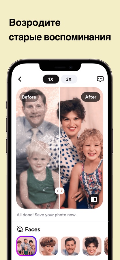 Восстановите поврежденные фотографии, удалив царапины и складки, и улучшите качество изображений.