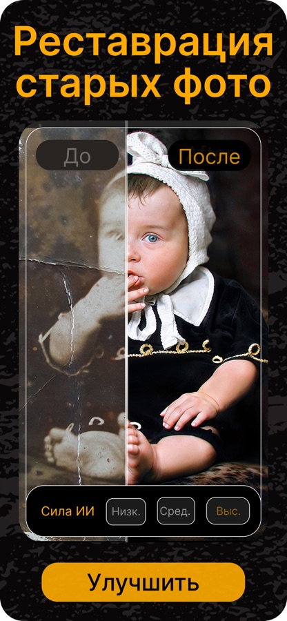 • Интуитивный интерфейс: Приложение создано для простоты использования и подходит как для новичков, так и для профессионалов, предоставляя все нужные инструменты для реставрации старых фотографий.