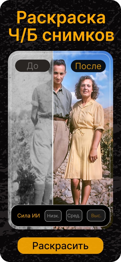 RetroFix — это лучший редактор старых фотографий, позволяющий легко восстанавливать фото, улучшать качество, убирать размытость и раскрашивать черно-белые фото. Превратите старые фото в чёткие, яркие изображения и сохраните их на долгие годы!