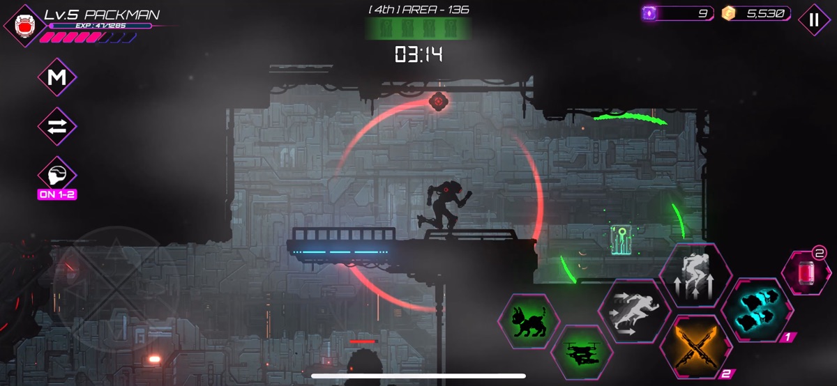 Undestroyed takes place in a futuristic cyberpunk world. It is a roguelike shadow-scrolling action game in which you clear one machine cell at a time in a world populated by rampaging robots.