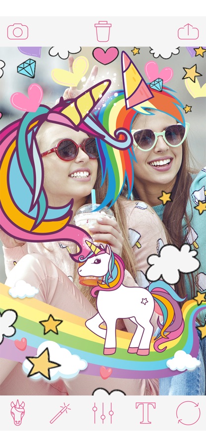 * Единорог Фото — это потрясающий редактор фотографий для девочек, чтобы добавить стикеры: милый пони, милые единороги на фото!