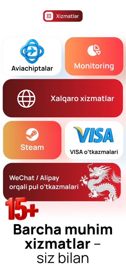 Қўшимча хизматлар — барча молиявий эҳтиёжларингиз бир илова ичида