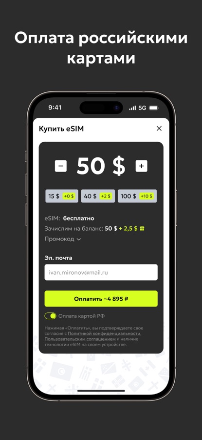 — Оформите eSIM всего за пару минут — достаточно указать email и следовать простым инструкциям в приложении.