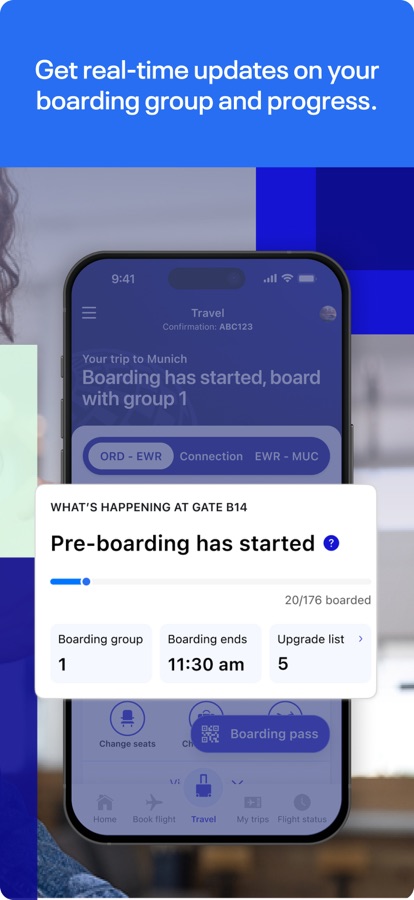 • get real-time updates on boarding progression so you know when it’s your turn to board