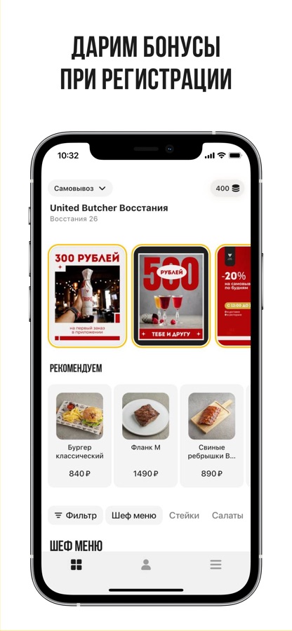 С помощью приложения United Butchers Delivery можно быстро и удобно заказать фирменные блюда на гриле, пиццу, бургеры, а также огромное количество аппетитных закусок, салатов и горячих блюд, приготовленных специально для вас.