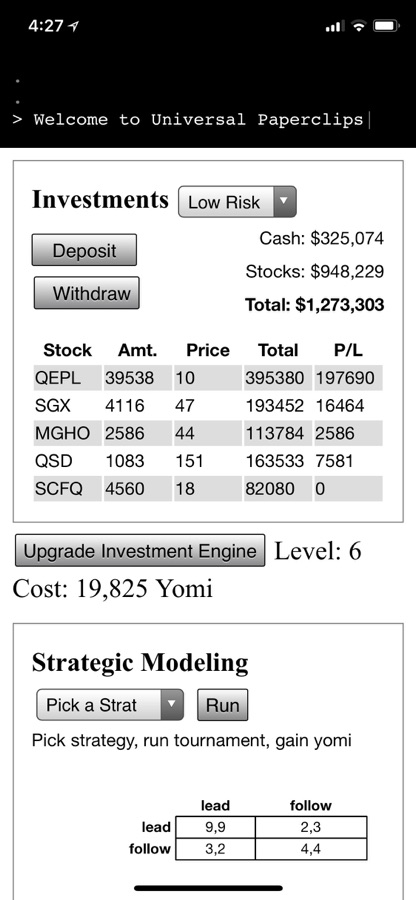 Скачайте игру Universal Paperclips™ для iOS - последняя версия (2.2) уже доступна для установки на ваш iPhone или iPad.