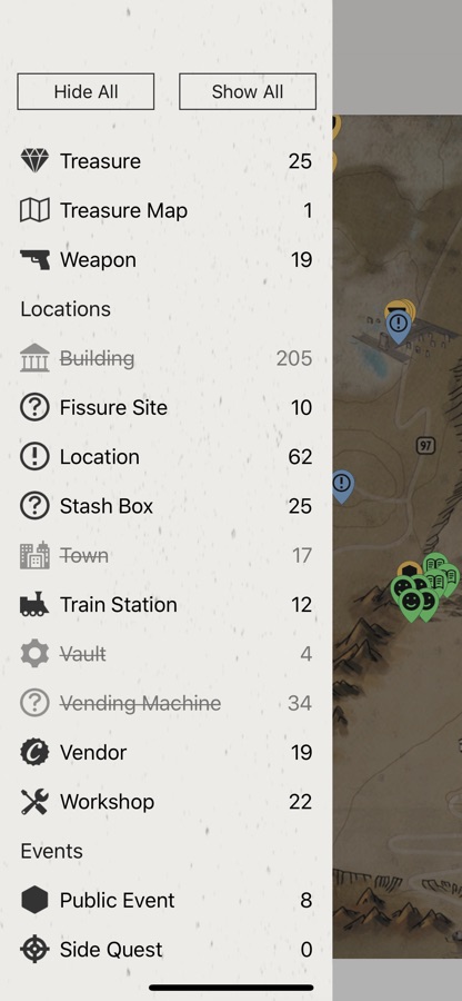 • Progress Tracker — mark locations as found and track the progress of your collectables.