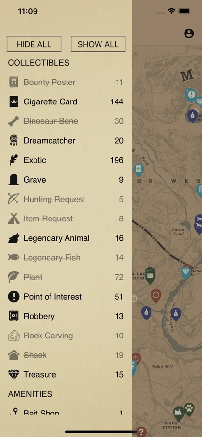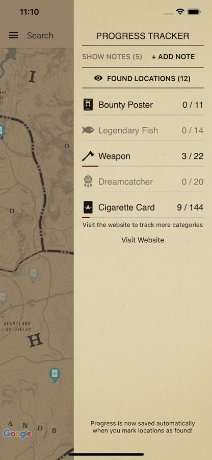 • Progress Tracker — mark locations as found and track the progress of your collectables.