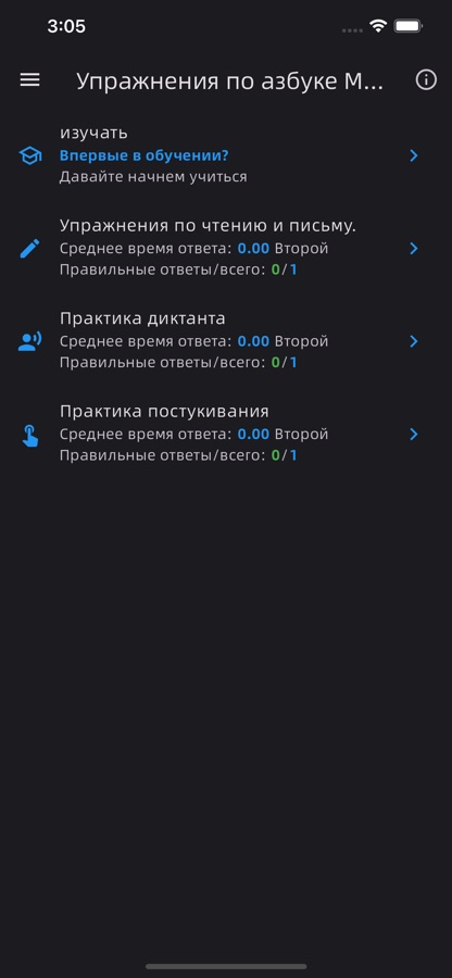 Практика диктовки. Практика диктовки может помочь вам улучшить навыки диктовки азбуки Морзе. Приложение поддерживает распознавание голоса по азбуке Морзе, что позволяет вам услышать азбуку Морзе и точно набрать ее.