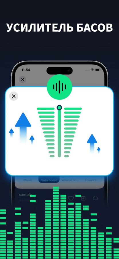 Функция усиления басов в приложении разработана для увеличения низкочастотных элементов аудио, делая басы в музыке более глубокими и мощными.