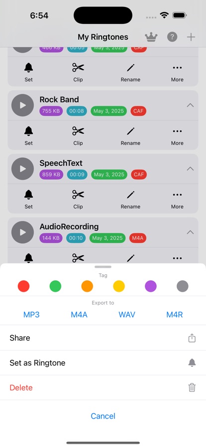 — Вы можете легко конвертировать аудио в другой формат, например .mp3, .m4a, .m4r, .wave, и поделиться другими приложениями.