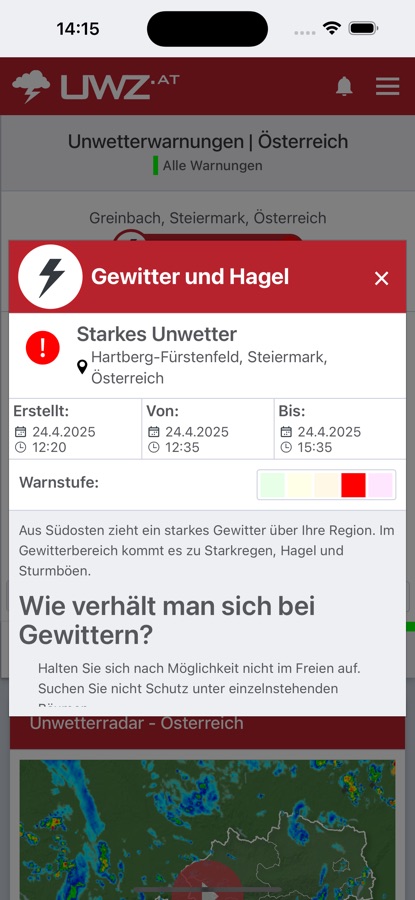 — Individuelle Ortssuche: Suchen Sie bequem nach aktuellen Unwetterinformationen für jeden Ort in Österreich.