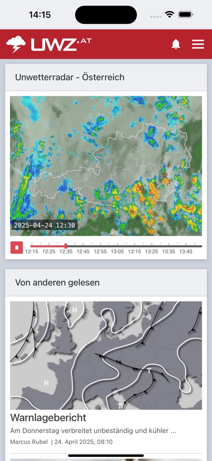 Die kostenlose App der Österreichischen Unwetterzentrale, den Experten für Unwetterwarnungen, bietet Ihnen alle Informationen über aktuelle Unwetter in Österreich auf dem Apple Smartphone. Bereiten Sie sich auf Gewitter, Hagel oder Glatteis rechtzeitig vor.