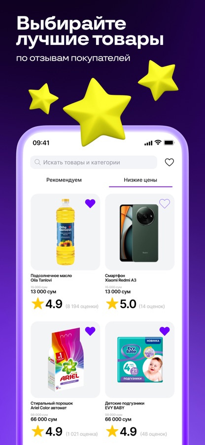 С онлайн-шопингом от Uzum Market больше не надо ездить на рынки, в магазины одежды, электроники и техники, ведь большой выбор товаров онлайн теперь в вашем телефоне. Товары без переплат доступны 24/7: косметика, вещи, зоотовары, телефон или продукты.