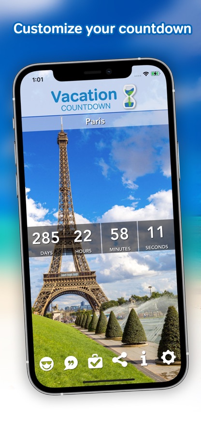 This FREE Vacation Countdown App gives you the EXACT date and time until you embark on your adventurous journey! Just input the starting date and time along with your special trip destination and watch the magic happen.