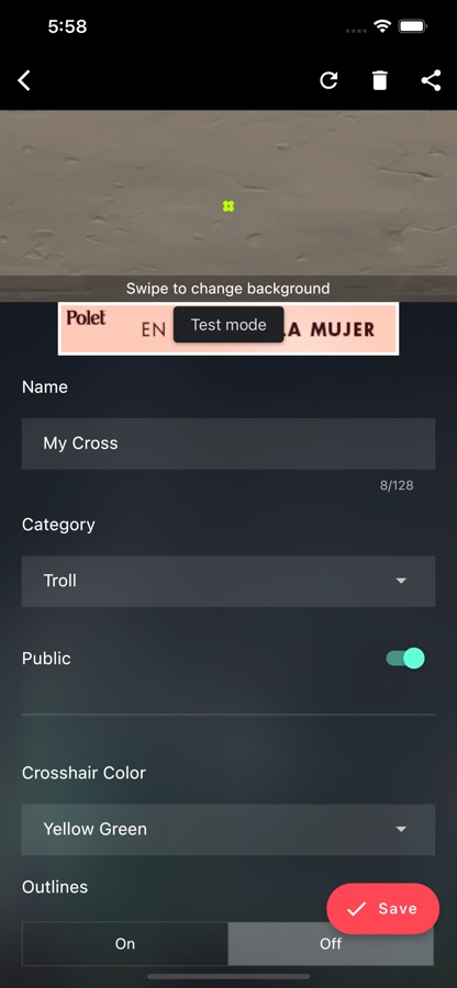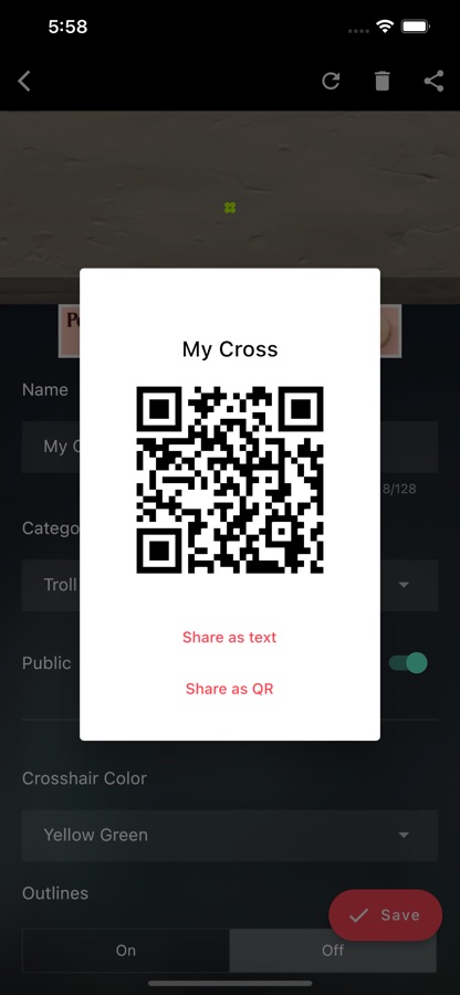 Share your profiles using text or a QR code, or scan other players’ profiles to import their crosshair profiles.