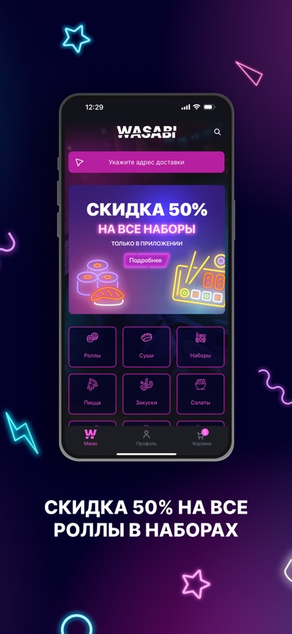 В мобильном приложении мы собрали хиты азиатской кухни и сделали их вкуснее и выгоднее. Всего один клик на кнопку «Загрузить», и тебе всегда будут доступны скидки: -25% на все суши и роллы и грандиозные -50% на все роллы в наборах!