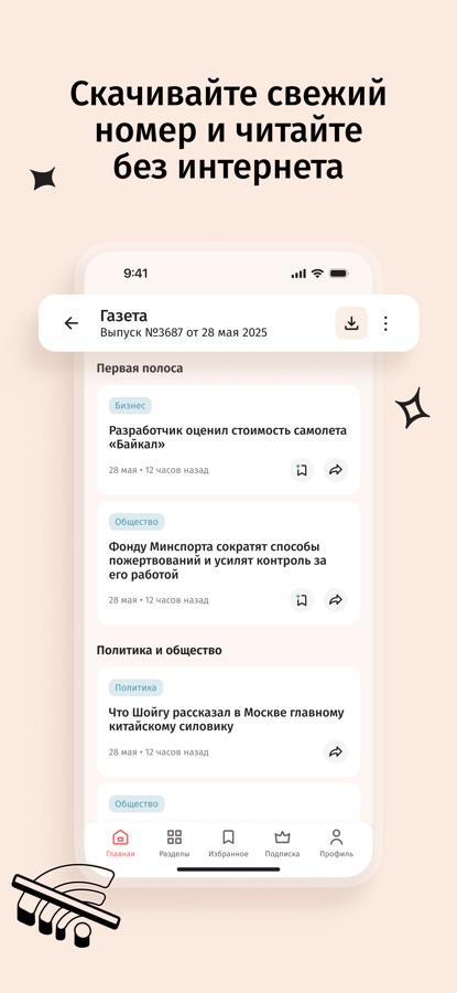 • Сохранение газеты в офлайн (по подписке);