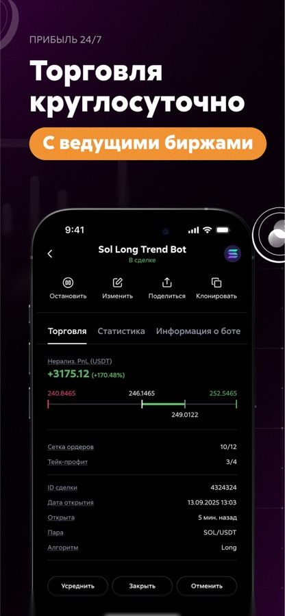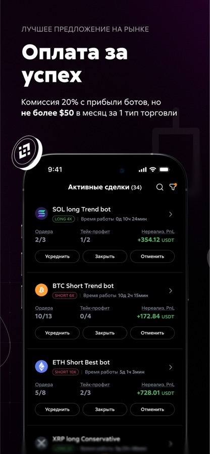 • 50+ готовых стратегий для Binance, Bybit, OKX и других топовых бирж