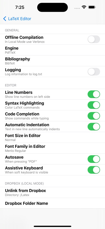 * 2 Modes: Local (stores .tex documents on your device) and Cloud (synchronizes your projects with Verbosus)