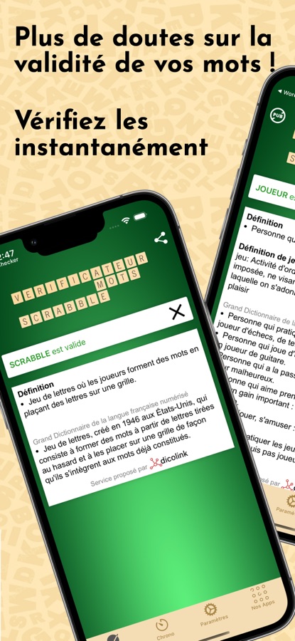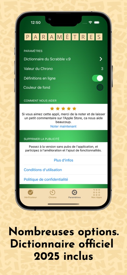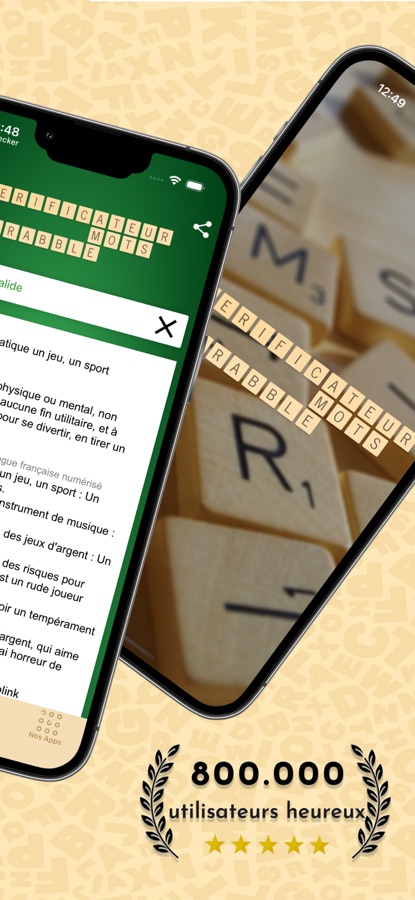 Destinée aux amateurs et aux pro, l’application comprend la liste des 400 000 mots et formes fléchies autorisés pour le jeu du Scrabble®.