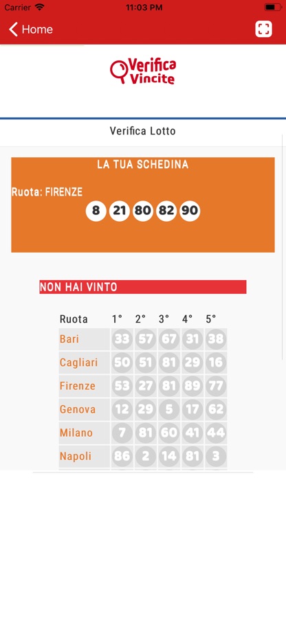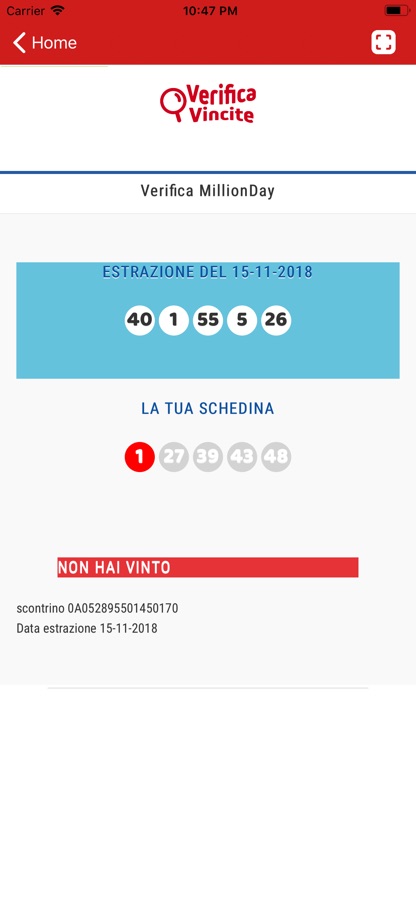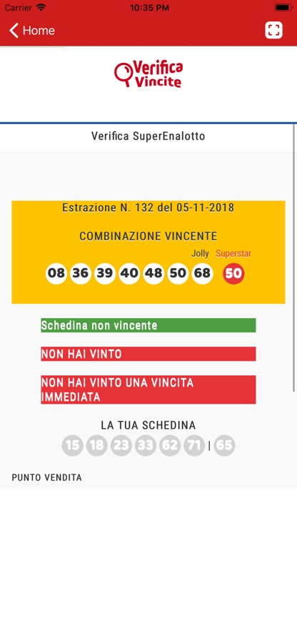 Basta premere il pulsante «Verifica» ed il gioco è fatto :-) l’app riconosce automaticamente la tipologia della schedina e visualizza l’esito.