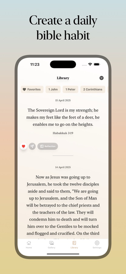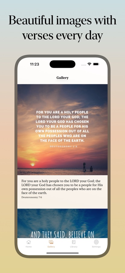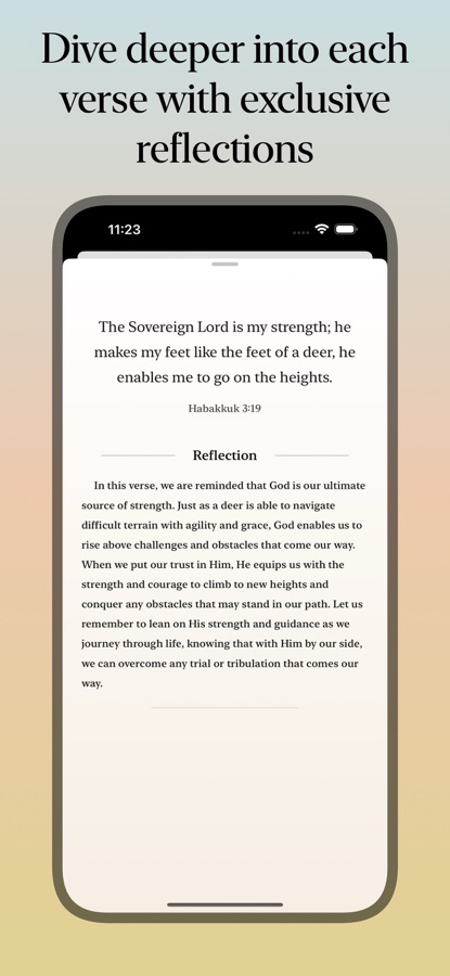 Receive beautiful daily verses in text and images. Dive deeper with exclusive reflections and easily share them with friends, spreading hope, comfort, and joy.
